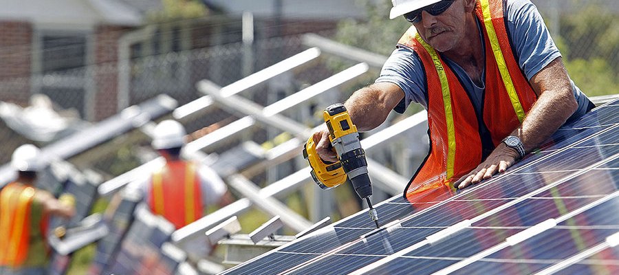 Two thousand eighty hours per year is a LOT of muscle, and we can choose to invest our working lives in fields that are meaningful – directly in ‘clean jobs’ like the solar installer in the photo, or indirectly like staff or backoffice jobs in the many emerging clean, green companies.